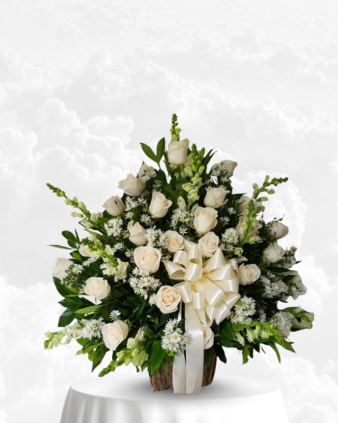 El arreglo Luz de Paz es un tributo majestuoso diseñado para expresar condolencias con la máxima elegancia y respeto. Esta imponente composición floral integra una variada selección de flores blancas que simbolizan la pureza y la serenidad, acompañadas de un follaje verde vibrante que resalta su belleza natural. El diseño se presenta con una estructura clásica y armoniosa, coronada por un delicado lazo de satén que aporta un toque de distinción y solemnidad. Es la elección perfecta para honrar la memoria de un ser querido y brindar consuelo a la familia, enviando un mensaje de paz, apoyo y acompañamiento sincero en momentos difíciles.
