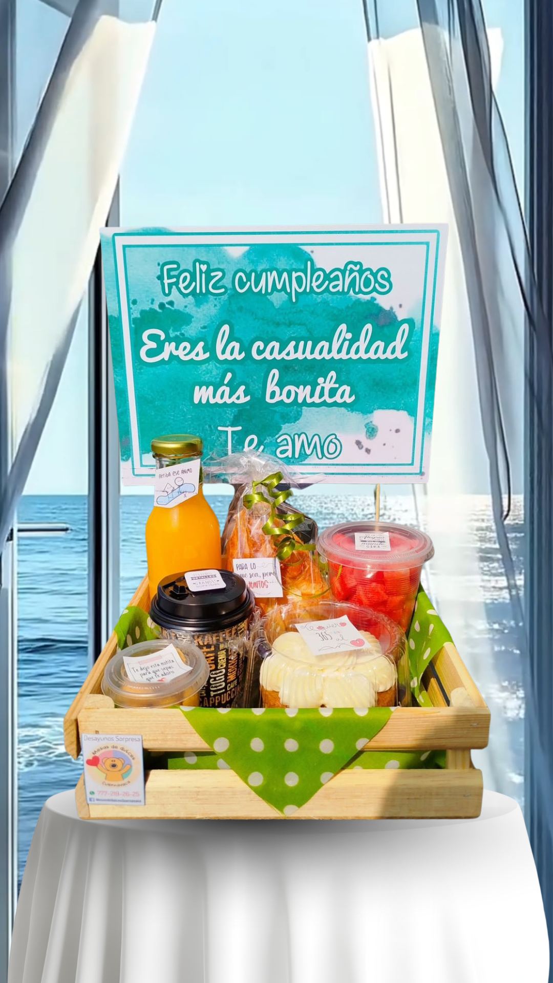 El Despertar de Amor es el detalle perfecto para transformar un cumpleaños en una memoria inolvidable. Esta canasta cuidadosamente preparada ofrece una experiencia matutina completa con jugo fresco, café o capuchino, una ración de fruta y una selección de deliciosa repostería artesanal. El corazón de este regalo es un emotivo mensaje de «Feliz Cumpleaños. Eres la casualidad más bonita. Te amo», que convierte el desayuno en una tierna declaración de afecto. Es una forma encantadora de sorprender a esa persona especial y hacerle sentir cuán valorada es desde la primera hora del día.