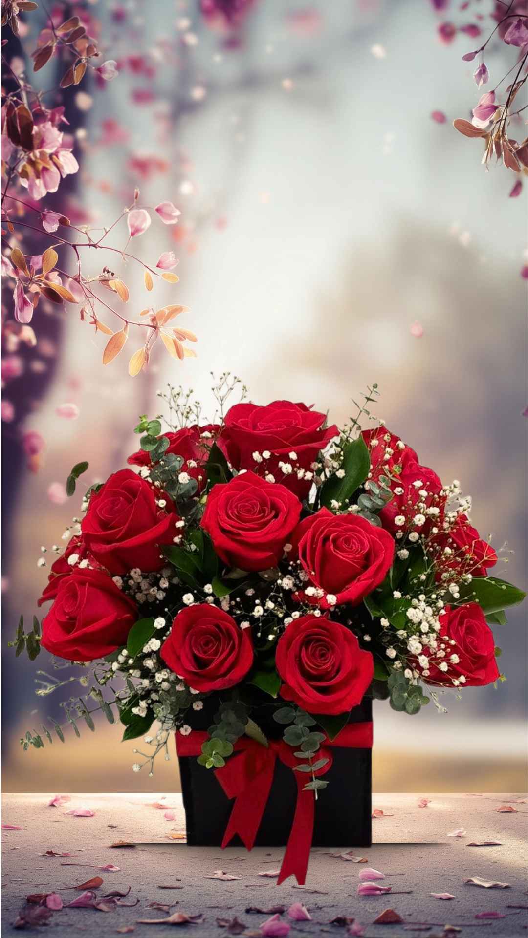 El arreglo Esencia de Mujer es un tributo visual a la determinación y la belleza de la mujer contemporánea. Esta imponente composición destaca por un exuberante bouquet de rosas rojas de exportación, cuyos pétalos aterciopelados simbolizan la pasión y la resiliencia. El diseño se complementa con delicadas nubes de baby’s breath blanco y tallos frescos de eucalipto, que añaden una fragancia revitalizante y un toque de frescura natural. Presentado en una sofisticada box negra de lujo con un lazo de seda carmesí, este detalle se eleva en un entorno de pétalos flotantes que evocan un jardín en pleno apogeo. Es el regalo ideal para reconocer el impacto y la fuerza de una mujer extraordinaria, convirtiendo su día en un homenaje inolvidable a su existencia.