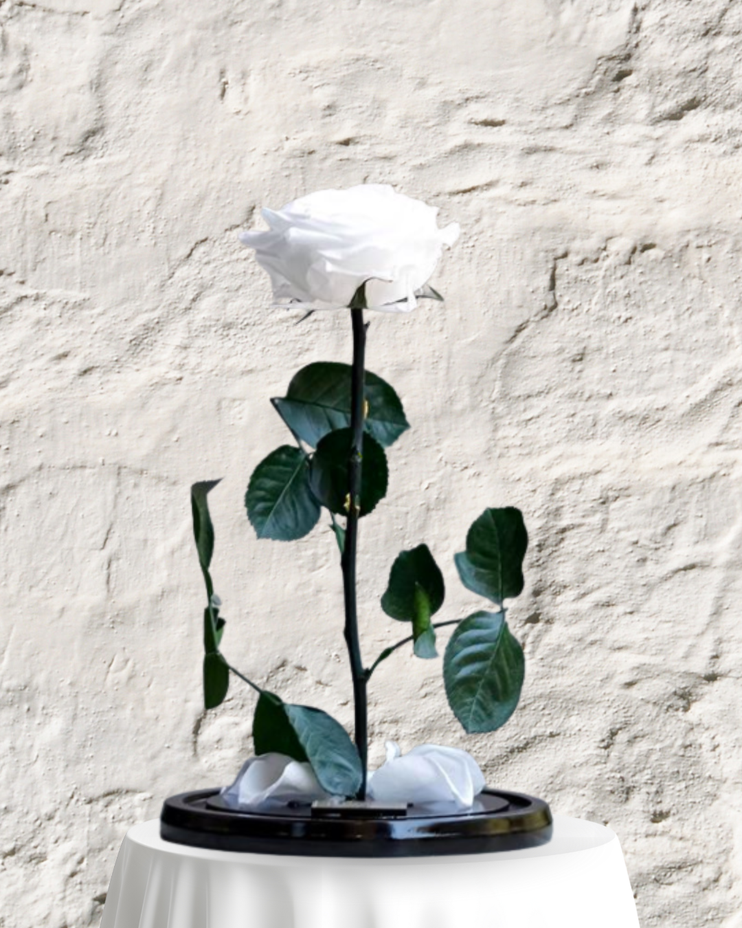 Pureza Eterna es una pieza conmemorativa de profunda elegancia, diseñada para honrar la memoria de un ser querido con un símbolo de paz inalterable. Este detalle presenta una flor preservada en un blanco inmaculado, que representa la pureza del alma y el recuerdo perdurable, sostenida sobre una base sólida y protegida por una estructura transparente que resalta su esbeltez natural. Su diseño minimalista y sofisticado la convierte en un tributo perfecto para expresar condolencias, ofreciendo un consuelo visual que perdura sin necesidad de cuidados. Es una elección ideal para regalar un mensaje de esperanza y serenidad que acompañará a la familia en la intimidad de su hogar.